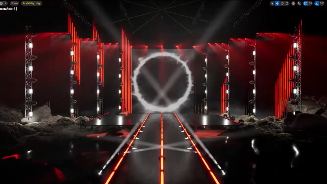 This project is a Previz Demo created using Unreal Engine and the DMX system, allowing designers and directors to simulate and communicate the overall visual effects in real-time. The production utilized a GrandMA2 console directly integrated into the Unreal system, enabling real-time lighting design and programming within the scene.